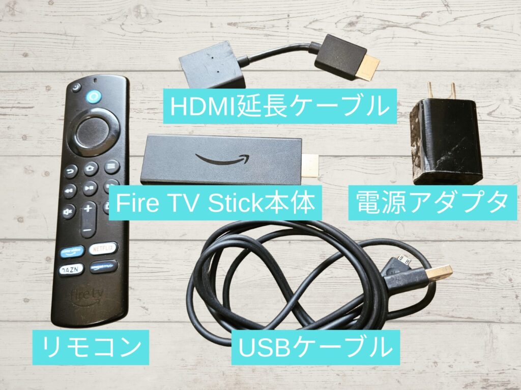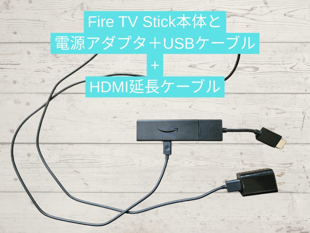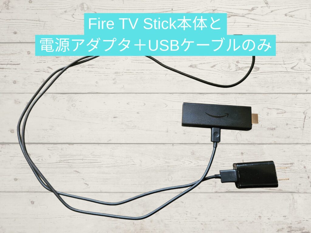 - Fire TV Stick本体とUSBケーブル、電源アダプタを繋げる