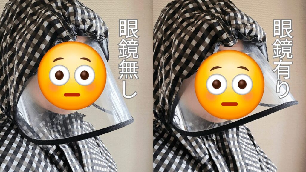 ちなみに、選択肢がある人は眼鏡の上からの着用は避けた方がいいと思う。なぜなら、顔への密着度が下がり、雨除け効果が下がるからだ。